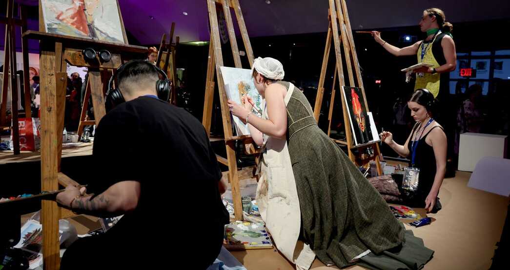 Группа студентов Fashion Institute of Technology (FIT) провела живописный поединок, цель которого - создание произведений искусства для аукциона в поддержку студентов FIT.